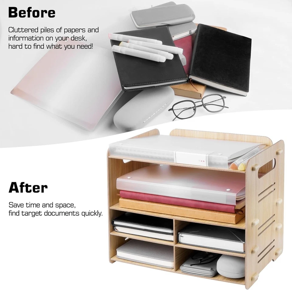 - Top Quality: This desk organiser is is made of smooth wooden material,made of MDF laminate, great for sorting mail, invoices, bills, memos, and other documents to keep your desk clean and tidy.