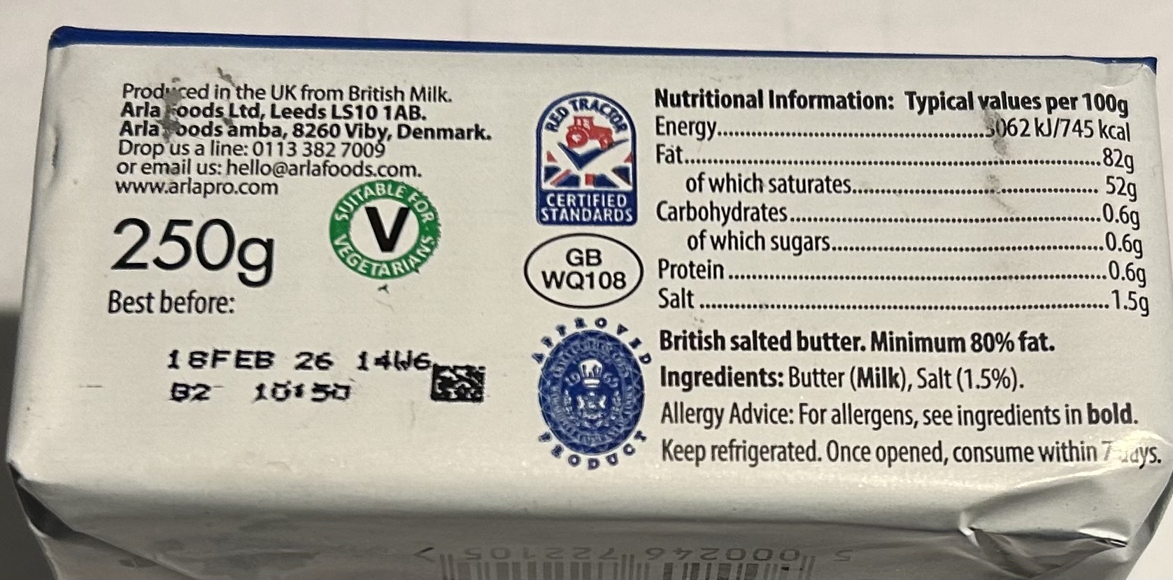 Arla salted Butter 250g.