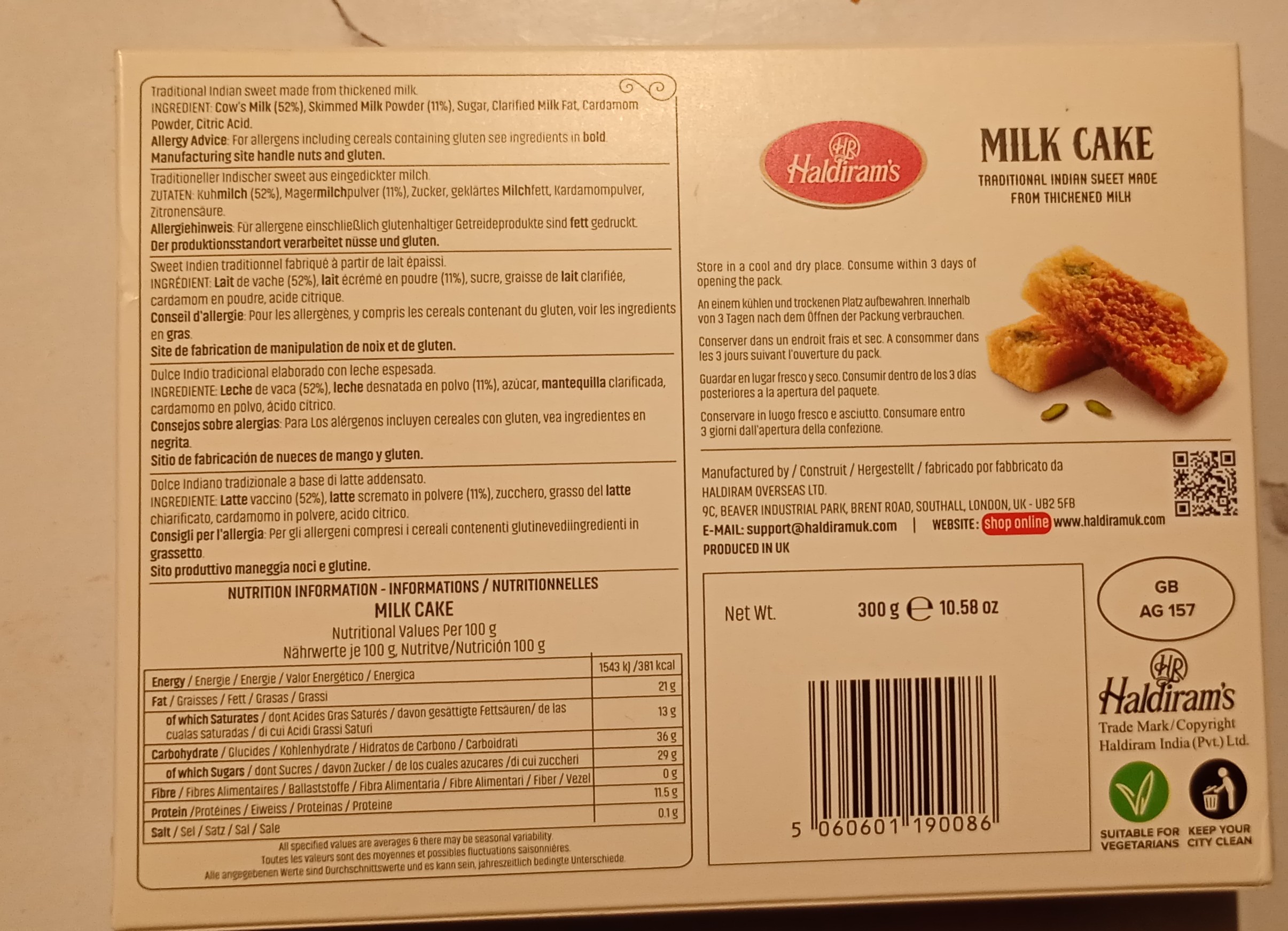 Haldiram Sweets Milk Cake - 300g quantity